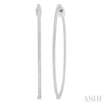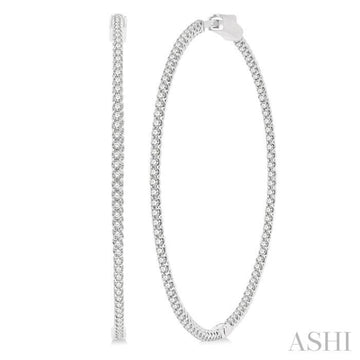 2 Ctw Inside-Out Round Cut Diamond 2-Inch Hoop Earrings in 14K White Gold