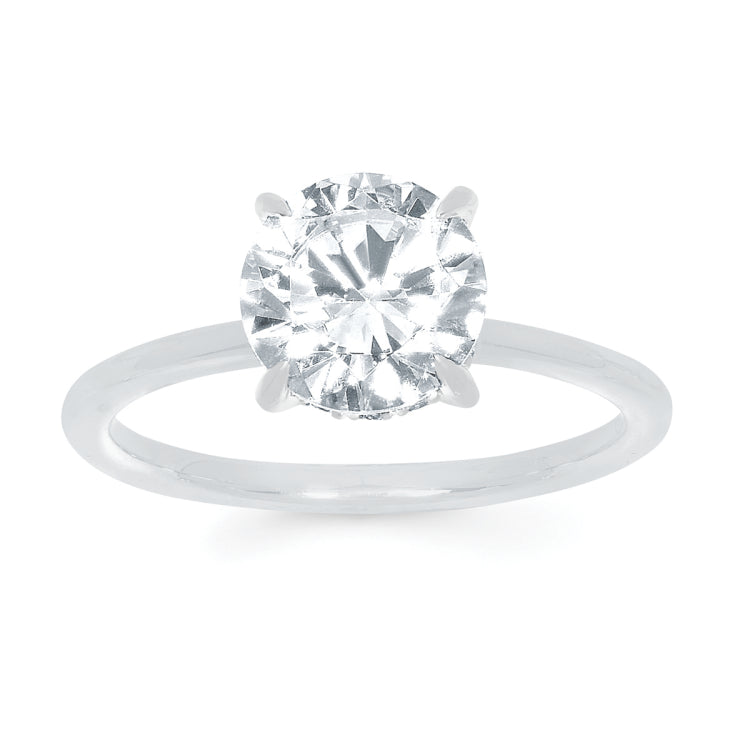 Classic Bridal: Hidden Halo1/8Ctw. Diamond Mounting with 2 Ct. Lab Grown Round Center Diamond in 14K Gold Engagement ring and wedding band sold separately