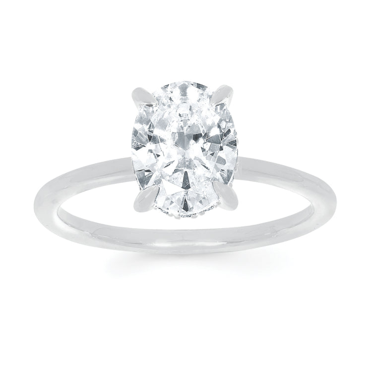Classic Bridal: Hidden Halo1/8Ctw. Diamond Mounting with 2 Ct. Lab Grown Oval Center Diamond in 14K Gold Engagement ring and wedding band sold separately