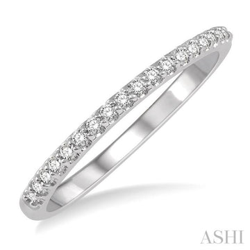 Impress your sweetheart with lavishness of this elegant Diamond Wedding Band. It shines with 22 sparkling round cut diamonds, beautifully pave set and rendered perfectly on 14 karat lustrous white gold. Total diamond weight is 1/6 Ctw.