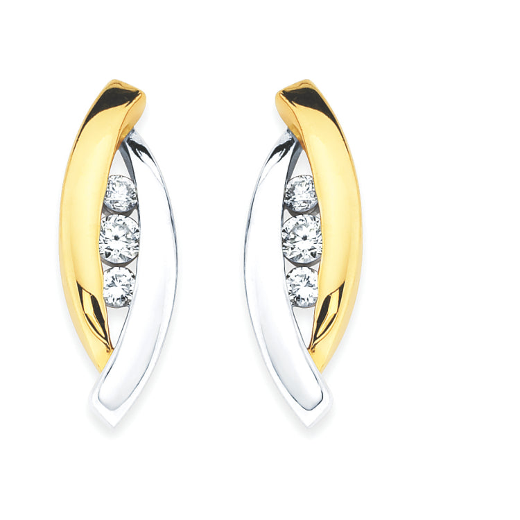 1/2 Ctw. Channel Set 3 Stone Diamond Tear Drop Earrings in 14K Two Tone Gold