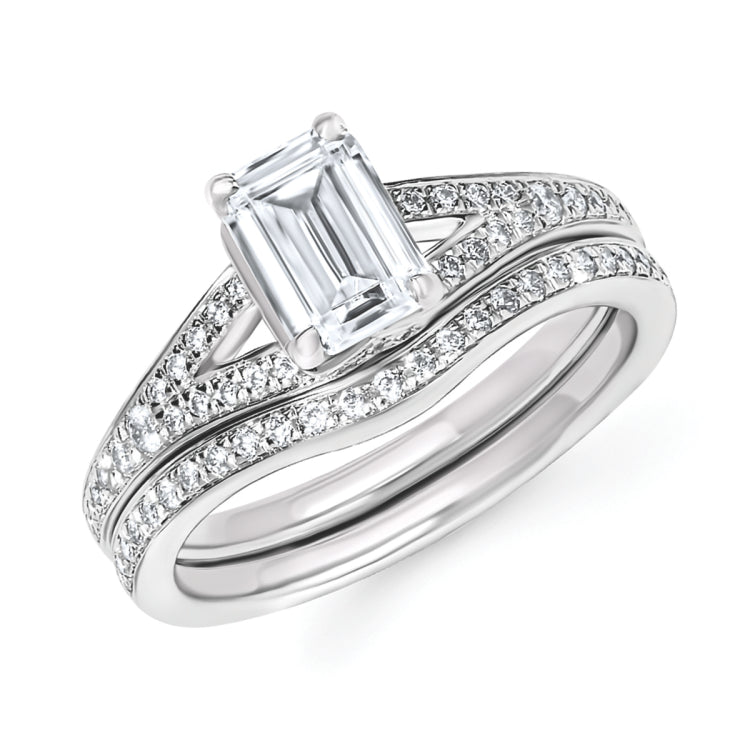 Classic Bridal: 1/4 Ctw. Diamond Semi Mount shown with 1 Ct. Emerald Cut Center Diamond in 14K Gold 1/8 Ctw. Diamond Wedding Band in 14K Gold Items also available to purchase separately