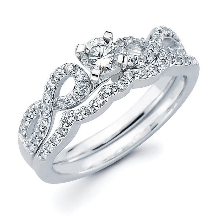Modern Bridal: 1/4 Ctw. Diamond Infinity Semi Mount shown with 1/4 Ct. Round Center Diamond in 14K Gold 1/8 Ctw. Diamond Wedding Band in 14K Gold Items also available to purchase separately