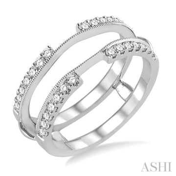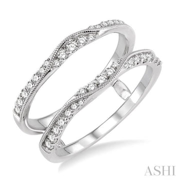 Envelop her solitaire ring and wrap her finger with the sparkling fascination of this gorgeous diamond insert ring. Styled in gleaming 14 karat white gold this ravishing ring features sparkling rows of 22 beautiful round cut diamonds that flow down...
