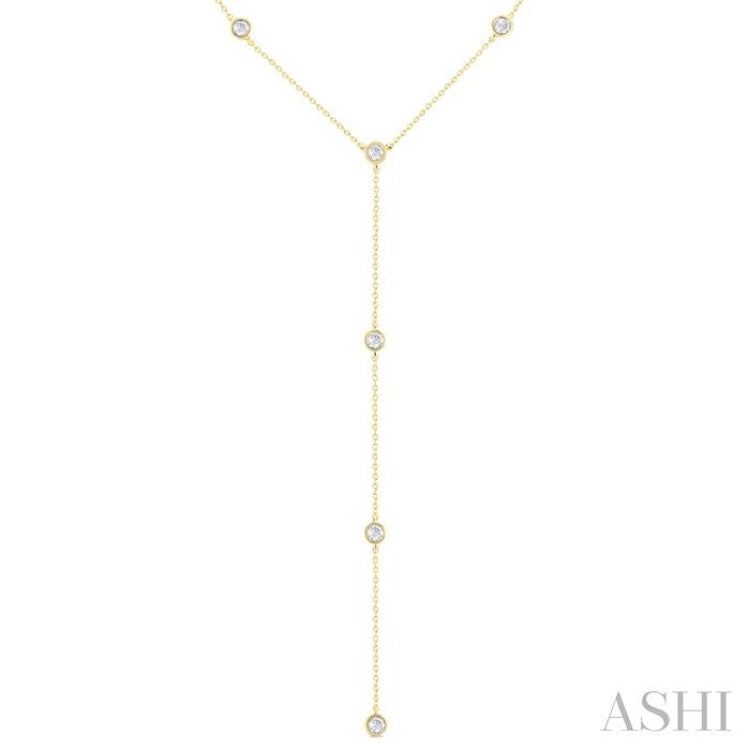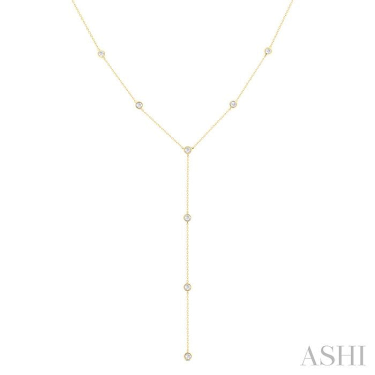 1/2 Ctw Bezel Set Round Cut Diamond Y-Shape Lariat Station Necklace in 14K Yellow Gold