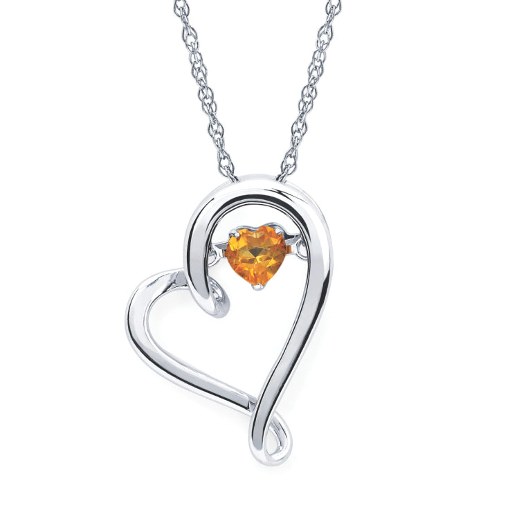 Shimmering Diamonds Heart Pendant With 4mm Citrine Birthstone In Sterling Silver