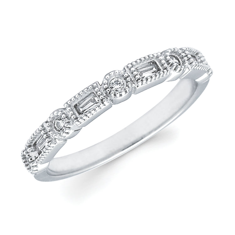 1/6 Ctw. Baguette & Round Station Diamond Stackable Band with Millgrain Detail in 14K Gold