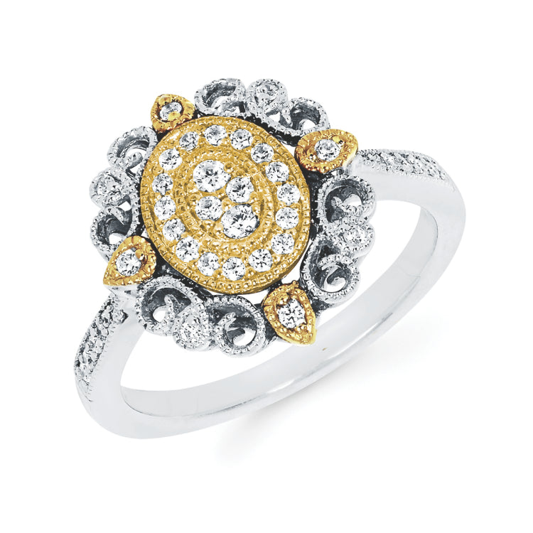 1/2 Ctw Round & Oval Cut Diamond Engagement Ring With 1/3 Ctw Oval Cut Center Stone in 14K Yellow and White Gold