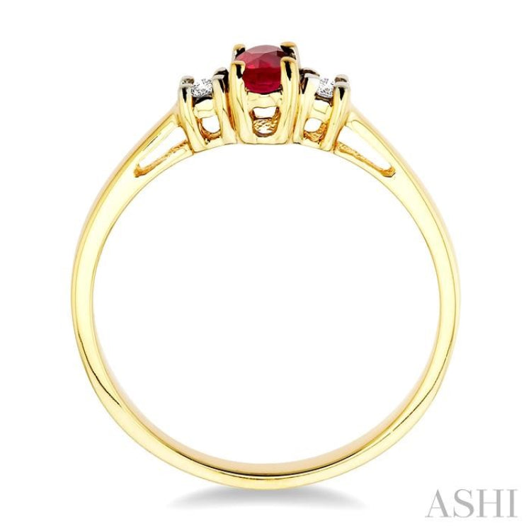 5x3 MM Oval Cut Ruby and 1/20 Ctw Round Cut Diamond Ring in 10K Yellow Gold