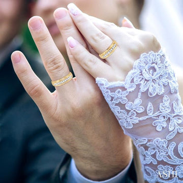 Treat yourself with the grace of this elegant diamond men's band. Styled in 14 karat yellow gold diamond band makes a great addition to any jewelry collection and can be worn on different occasions. This band is channel set with...