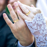 Express your deep intimacy and lasting togetherness with this charismatic diamond duos ring Set blazing in lustrous 14 karat yellow gold. Each ring in this mesmerizing set features a captivating princess cut diamond in bezel setting with glowing satin finish. The total diamond weight for the set is 1/6 Ctw.