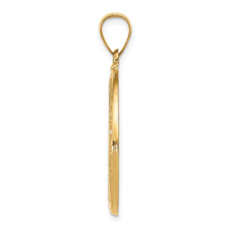14k Polished and Satin Hollow St Nicholas Medal Round Pendant