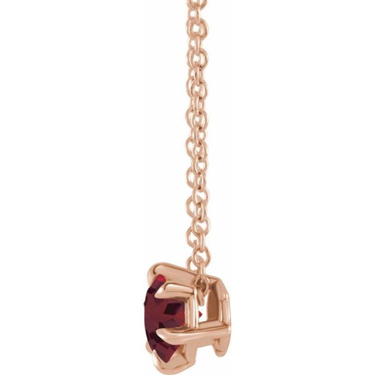 14K Rose Gold 6 mm Natural Mozambique Garnet Solitaire 16-18" Necklace