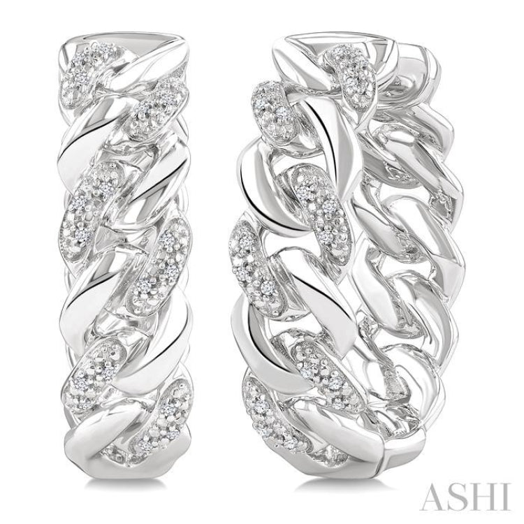 1/10 Ctw Single Cut Diamond Curb & Cuban Earrings in Sterling Silver